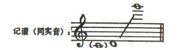 冬不拉可奏泛音,常用的是各弦的丢、吉、丢处的自然泛音。如: