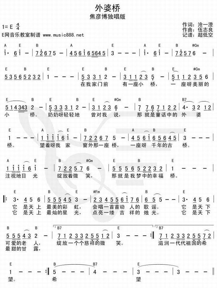 外婆桥-焦彦博独唱版(简谱 歌谱 歌曲简谱 合唱简谱 民歌简谱 影视简谱)