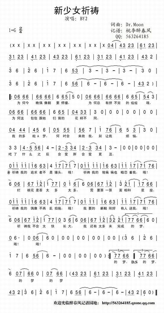 新少女祈祷-BY2(简谱 歌谱 歌曲简谱 合唱简谱 影视简谱)