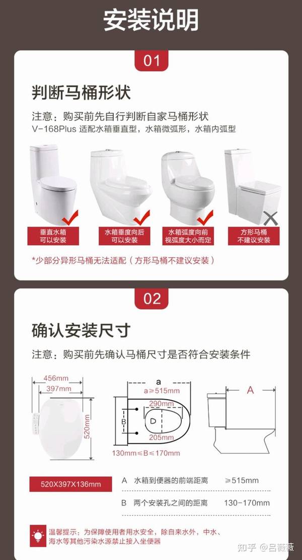 首先呢,你要看看你家马桶的位置周围1.5m内是否有3孔的电源插座、周围65cm内是否有自来水口、右侧是否有10cm的空隙来容下操作面板,还有就是在购买前先明确自家马桶的型号与尺寸。马桶需要测几个数值,因为不同的智能马桶盖所要求的尺寸也不一样,就是测一下图片中的几个间距,不过总的说来,一般情况下都是可以安装智能马桶盖的,因为制造商就是要卖这东西的,所以各种型号尺寸的马桶都会有相应的智能马桶盖的。