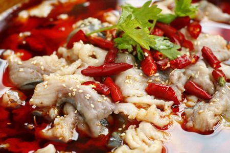 接下来我们先将鱼给杀了,然后洗干净,剁下头尾,片成鱼片,并把剩下的鱼排剁成几块。把鱼片放在碗里,加入些料酒、生粉和一个蛋白、少许盐抓匀后,腌制个15分钟。头尾及鱼排另装盘,用同样的方法腌制。再将洗干净的豆芽放到烧开的锅中,只要放入烫一下就好了,这个容易熟,捞入大盆中,按个人口味撒一点盐,备用。在干净的炒锅中加平常炒菜三倍的油,油热后,放入三大匙豆瓣爆香,加姜、蒜、葱、花椒粒、辣椒粉及干红辣椒中小火煸炒。出味后加入头尾及鱼排,转大火,翻匀,加料酒、酱油、胡椒粉、白糖适量,继续翻炒片刻后,加一些热水,同时放盐和味精调味,等到开水开后,把一片片将鱼片放入,用筷子拨散,3~5分钟即可关火。把煮好的鱼及全部汤汁倒入刚才盛豆芽的大盆中,另取一干净锅,倒入半斤油,待油热后,关火先晾一下。然后加入花椒及干辣椒,用小火慢慢炒出花椒和辣椒的香味,注意火不可太大,以免炒糊,辣椒颜色快变时,立即关火,把锅中的油及花椒辣椒一起倒入盛鱼的大盆中就完成了。