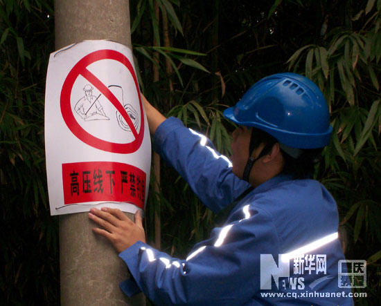 新华网重庆频道11月23日电(曹春艳)为防止高压线下垂钓导致人身伤亡的悲剧发生,11月20日,重庆南岸供电局配网中心把集中整治跨线鱼塘安全工作列为"迎峰度冬"期间月度安全检查工作的重点,供电职工走乡串户,给辖区内的鱼塘都悬挂上了统一制作的安全爱心警示牌,为创建和谐社会献力。