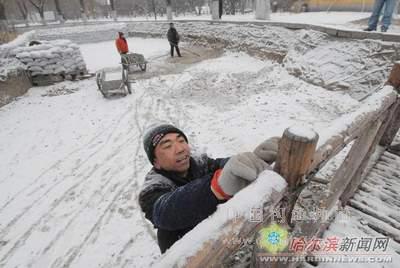 东北网11月23日电 近日,哈市道里区兆麟公园内的冬钓场建设全面启动,该冬钓场将安装多台大功率的抽水机来循环场内的水源,使场内的水变成活水不会结冰,让游客们在观赏冰灯的同时还可以体验冬日垂钓的乐趣,冰钓场将在冰雪节前向游人开放。