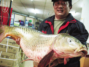 青岛早报4月28日报道 昨日上午,市民孙先生和几位钓友在即墨蓝村镇四里水库钓上一条身长1米、重达12公斤的大鲤鱼。孙先生告诉记者,当时他发现上钩的鱼力气出奇得大,便请一名朋友帮忙,花了半个多小时才将这条大鲤鱼钓上。 据市垂钓协会的王会长介绍,这么大的野生鲤鱼在北方非常罕见,据他猜测这条野生鲤鱼至少十几岁了,个头和岁数称得上岛城的“野生鲤鱼王”。