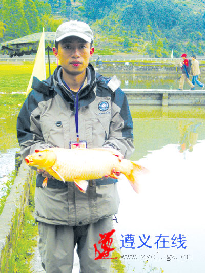 在5月2日的垂钓大赛上,遵义钓友钓起一条7斤重的红色鲤鱼。据介绍,小个头的红鲤鱼常见,7斤重的红鲤鱼不常见,用鱼竿钓起来的7斤红鲤鱼更少见。同时,这条鱼是用无倒刺鱼钩钓的,在遵义,尚属首次。