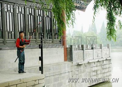 根据群众的举报,说在逍遥津公园里有人在偷垂钓。逍遥津公园是位于合肥市中心的一座风景秀丽的人民公园,平时这里是人们常来的最佳休闲娱乐场所。在5月13日的下午,记者跟着群众一起来到了公园,这里风景真的很秀丽,还有很多的人在这里散步。走到逍遥津公园的逍遥湖边,看到有一个红色衣服的男子在这里偷垂钓,他钓到大的就放进旁边的鱼篓中,钓到小鱼就扔到一边的地上,旁边的游客们看到这种情况,都是纷纷的摇头,真替他感到害羞。这种人还真是不道德,可以垂钓的地方多的去了,这可是公园,不准垂钓的。