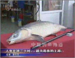 记者来到陶先生家中,向记者展示了他的战利品,好家伙,拿来称一称,重达到了27公斤,拿皮尺一量,身长有1.42米,腰围也达到了75厘米。说到了昨天下午的那场大战,陶先生还兴奋不已,他是经过了三个小时二十分钟才把这条大乌青鱼给钓了上来。他把它钓上来的时候,还是旁边的好友帮他给拖上来的,这种大家伙我还是第一次看到,也是第一次钓到这么大的。我都有10多的垂钓经验了,还真是头一回。我想我会永远记住这一天的。