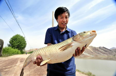 本报讯 有人报料说,有一位垂钓者的甘先生在5月20日这一天,在永登苦水镇新屯川学校旁边的水库边钓到两条“超级”大草鱼,其中一条体长竟达92厘米。