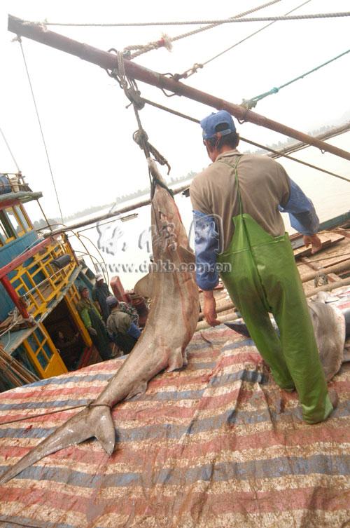 鲨鱼不是不允许捕获的吗?连江县海洋渔业局工作人员告诉记者,这次捕获的鲨鱼主要是双髻鲨,它不属于保护范围内的鲨鱼。