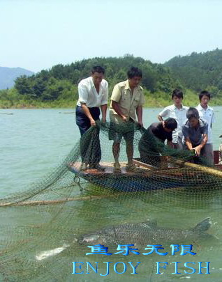几个人正在用网捕捞大青鱼