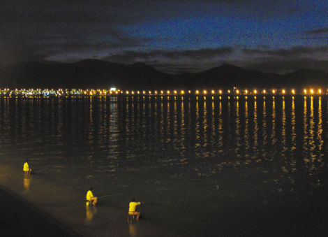 浙江在线讯 在7月30日记者发现,在夏后的钱塘江边有不少的人玩起了夜钓。到了夜色暗下来后,就总能看到两三个人在钱塘江边垂钓。可是有些人搬出小凳子就坐在涨上来的潮水中垂钓,真是叫人心惊胆战的。
