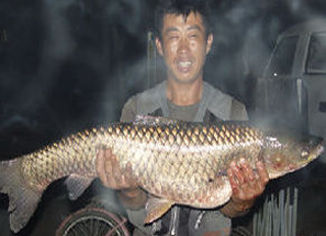 记者赶到现场看到了那条大“家伙”,这条大鱼还被当地人称作“鱼王”。景钱亮告诉记者,他当天下午跟朋友一起过来这边垂钓,过了很长时间都没有钓到鱼,但是在无意中,发现浮标轻轻点动着,他刚起起竿时,就感觉到鱼竿像是挂住了塘底石头。再试时,才感觉出是一条大鱼上钩。随后,一场较量展开了。为防止鱼线绷断,他赶紧放线扯着大鱼在塘边遛起弯来。但大鱼始终不肯“束手就擒”,一直在水中折腾着。过了30多分钟后,怕鱼给跑了,他只好跳进水中按住了大鱼,然后叫来朋友帮忙,才把大鱼从水中给拉了上来。经称量,大草鱼体重达23.3斤。