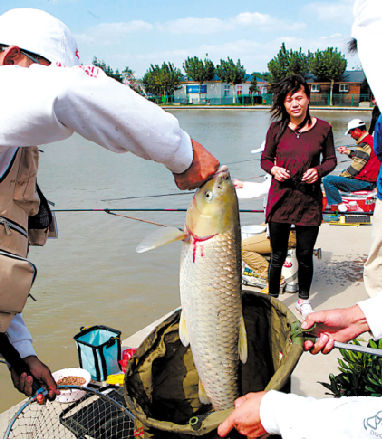 上海嘉定生活网消息 在10月7日这一天,嘉定区在华亭人家鱼塘举行了一场垂钓比赛,垂钓爱好者都聚集在一起竞技,有来自上海市和嘉定区的两百多名垂钓爱好者。看,有垂钓者已经钓上了一条近十斤重的大鱼,现场气氛正在激烈的进行。