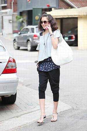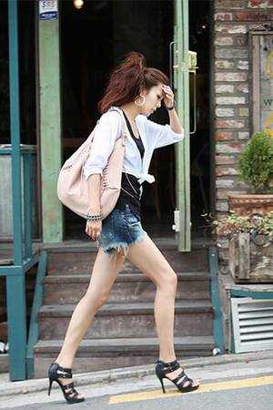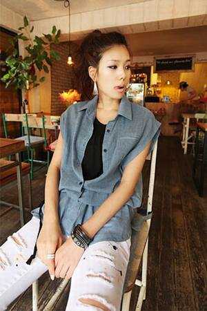 点评:衬衫款短袖非常实用,内搭黑色吊带穿着就可当成小外套。