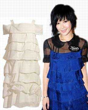 风格点评:及膝的长度还可以巧妙地遮掩住水桶腰和大象腿,但有一点,大叠边并不适合胸部丰满的MM,这会让自己看上去像一个活动圆柱。