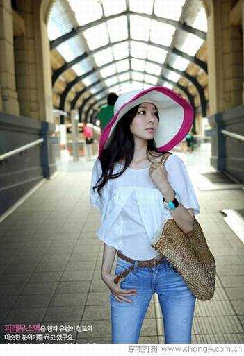 超大宽檐搭配白衫仔裤,波西米亚艺术女郎。