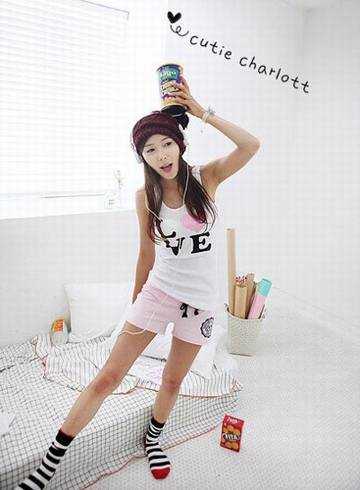 时尚点评:LOVE的运动款背心,贴身的设计轻薄舒适,配上纯棉运动短裤,清爽又休闲。在房间里听歌、跳舞、做家务都很适宜。为了防止感冒,穿上斑马条纹袜,好看又实用。