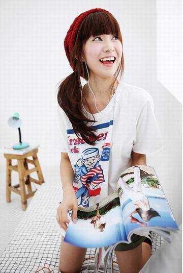 时尚点评:宽松的T恤可能是很多女生在家的休闲装首选。选择一件卡通图案的大T恤会让你的可爱度立马飚升,配上卷边短裤,休闲的很有时尚感。