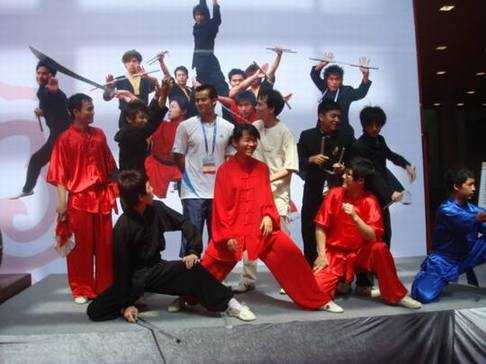 哈哈,我进去第一个看见的就是这个画面了,一个武术学院在宣传他们学校和中华武术精神,造型不错吧!