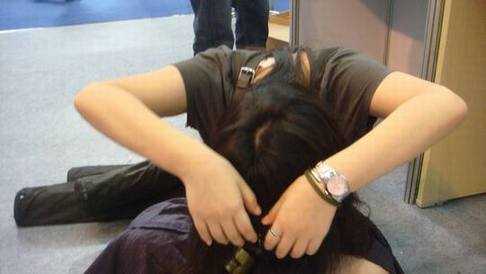 在会场,没什么人来我公司展位的时候,我和同事一起玩的游戏,呵呵,模仿贞子,可能功力还不到家,不是很像,根本不吓人啊,回家多练练吧~