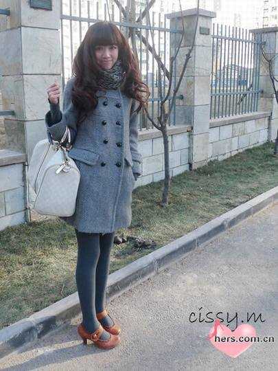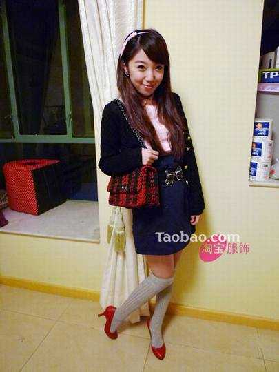 淑女的搭配,很有韩国学生的气质感觉噢,整体搭配非常协调抢眼噢