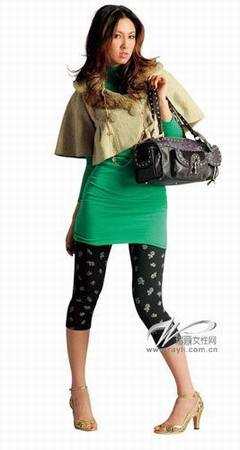 绿色高领连衣裙/Happy's 2nd,毛领短款外套/Fifi Zass,黑地白花七/ebase