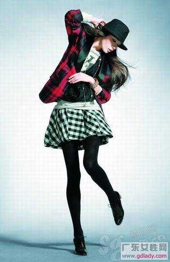 大热的格子是你购衣清单中绝对不能错过的单品,那么格子加格子的混搭则绝对让你够味,红黑格子西装上衣加以绸缎装饰提亮视觉重点,内穿灰黑色马甲长衫慵懒而不失硬朗。承上启下的黑白格子短裙与上身红色格子呈现红与黑的强烈对撞效果,裙子的斜裁设计让格纹有了翻天覆地的变化。因为脚上那双帅性的漆皮及踝短靴让你即使在众人的瞩目下也想肆无忌惮地翩翩起舞。