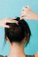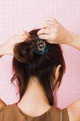 3.最后将缠盘发后的头发以黑发夹固定,尽量不要让黑发夹外露。