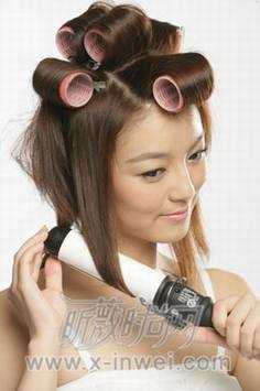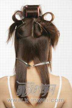1.头顶部使用四个发卷。