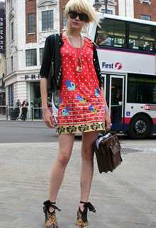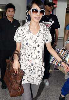 潮女蔡依林在装扮上几乎没有让人失望过,深得日本潮流天后滨崎步穿着精髓的她装扮都以日韩范儿为主,这一点与她不是很高挑的身材也有关系,可爱中又带有个性化的装扮最适合她了。星星印花的长衫和夸张的大墨镜打造出抢眼的明星气势。