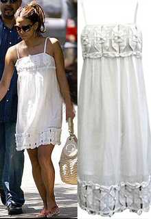 黑皮肤的女生儿更要穿白色的服装,依照顏色搭配的原理,色差越大视觉效果越好。白色吊带裙造型虽然简单,但在胸口和裙摆处的立体褶皱装饰却很有设计感。