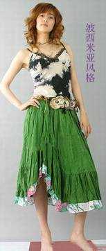 尽管波西米亚风格的服装呈现出多种外貌,但通过对这几年流行样式的总结,我们仍然可以从中找到一些明显的特征。波西米亚风格的服装在总体上注重局部细节的装饰,单纯而细腻;吉普赛风格的服装夸张奔放,强调多色彩的组合。具体表现为: