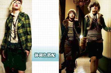 与白色搭配,给人一种清纯的感觉。金褐色及膝圆裙与大领衬衫搭配,可体现短裙的魅力,增添优雅气息。选用保守素雅的栗子色面料做外套,配以红色毛衣、红色围巾,鲜明生动,俏丽无比。