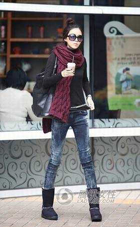 时尚衣服搭配点评:简单的就是最美的,黑色给人最多诱惑和想象的空间,素到没有任何装饰的针织衫,由于具有弹性,所以修身效果超好,任意搭配一条大围巾