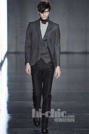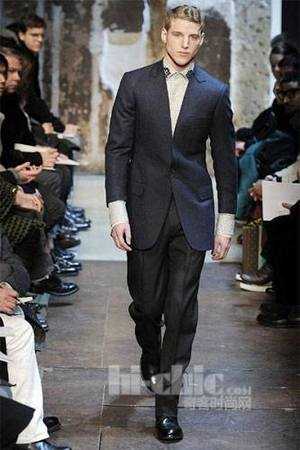 今年秋冬的时装舞台上,西服依旧是一个重要的单品门类,除了常见的整身套装,上下身不同面料的套装也非常流行。西服的裁剪还是很合身,但是渐渐开始强调肩部的线条,很多创意设计师会故意设计宽肩或者翘肩的款式,来强调这种变化。