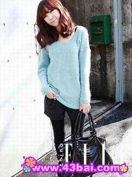 轻薄单品:湖蓝色套头针织衫