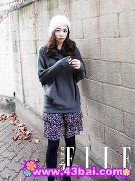 以实用派为出发点的混搭佳作。在宽松廓型的笼罩下,灰色长型卫衣会令你看上去实际娇小很多,而雪纺、圆点、彩色结为一体的裙装则彻底打破了黑灰色沉闷。