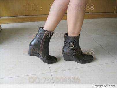 大象腿的MM推荐靴款 大腿粗壮的MM在选择靴子的时候,要避讳的并不是很多,因为一般的靴子都是在膝盖以下的。但是也不能毫无顾忌,大腿的粗细程度也很影响靴子的穿着效果。建议选择带有皱褶设计的靴款,用靴子的体积感来中和大腿部分的不完美。还可以选择一些鞋口比较宽的靴子,但是不宜太夸张,如果鞋口宽于小腿太多的话会反衬出小腿与大腿粗细的差距。 大象腿的MM不适合的靴款 靴子不能选择太短的款式,细跟也不适合,会有一种头重脚轻的感觉。 大象腿的MM搭配建议 五分裤和中裙是最适合的选择,一些斜纹或者小格纹图案都有视觉收缩的效果。但如果你觉得这种搭配太过于平凡的话,也可以尝试穿着裤脚收紧的马裤,帅气的造型一定能为你的魅力加分。再加上一件中长款的大衣那就很完美了。 萝卜腿的MM推荐靴款 小腿粗壮的MM有很多是属于遗传的,她们也许别的地方都很纤瘦,但一双小腿却怎么也细不下来,那么你可以选择一款中长型的靴子将小腿藏起来。靴子上面适宜带有一些垂直的图案花纹,把人的视线引向纵深方向。褶皱型的靴子,和从去年就很流行牛仔靴也是不错的选择。如果靴子是采用系带式的设计则最好是一直系到鞋边。 萝卜腿的MM不适合的靴款 中等偏短的靴长是最大的忌讳,刚刚卡在小腿肚下面等于将你的缺陷摆上桌面与人分享。也不能搭配袜裤一类太轻薄又太紧身的下装。太细的鞋跟也很不利,因为它们会和你粗壮的小腿一起形成一个倒三角的形状,让人为你的平衡捏一把冷汗。 萝卜腿的MM搭配建议 对于这一类MM,宽松休闲型的5分裤和中裙也可以搭配,不过在裙子的选择上H型的裙子会比宽摆的更好,不要因为想要掩盖缺陷而做得太过夸张,所谓矫枉过正,什么都要刚刚好,而不要太过头。