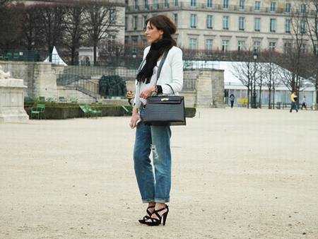 时尚服饰搭配点评:一种简单的混搭,也很有效果。很街头,上衣很OL。这样的搭配很符合这个女士的年龄和整体气质。时尚并不是要把所有的流行元素都加在自己身上才好,最重要的是要清晰地表达自己的个性和气质。