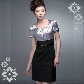 皇冠两件包EMS♀韩国订单~09新款韩版大方气质修身三色拼接裙