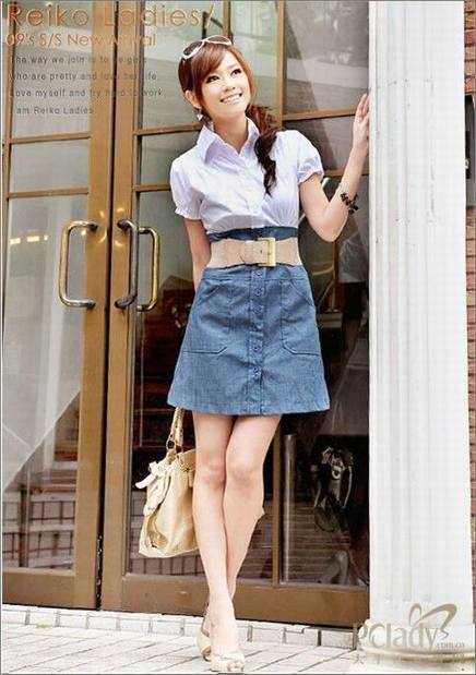 高腰的裙款造型创造出纤细的腰线,而利用牛仔面料拼接而成的单品使人眼前一亮。不用再烦恼该如何搭配了,带着些甜味的公主袖和小圆领,搭配率性风格的高腰裙款,而腰身后方的松紧腰线绝对是修饰身材的心机款式,再搭配一条时尚的腰带,让OL依旧有型又美丽。