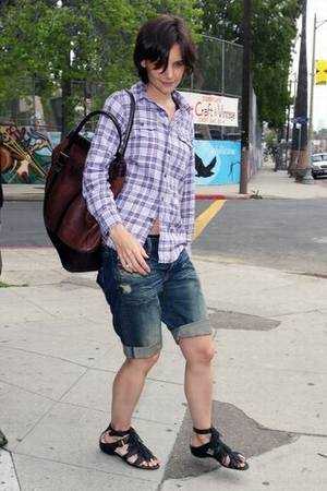 明星点评:格子衬衫牛仔短裤酷感十足,流苏凉鞋更是起到点睛之笔。