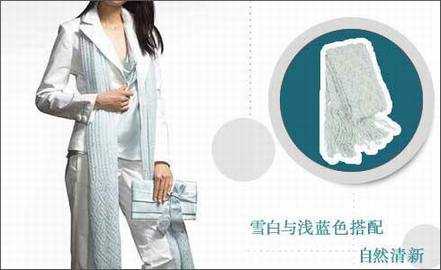 搭配三 雪白与浅蓝色搭配 雪白的OL套装,整体气质自然清新,与浅蓝色的长款针织围巾组合,极其可爱。