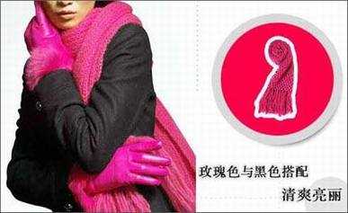 搭配五 黑色与湖蓝搭配 黑色的针织围巾绝对是百搭。一贯给人稳重,沉闷的感觉,所以在与服装的搭配中,应该选用色彩鲜艳的服装为主。