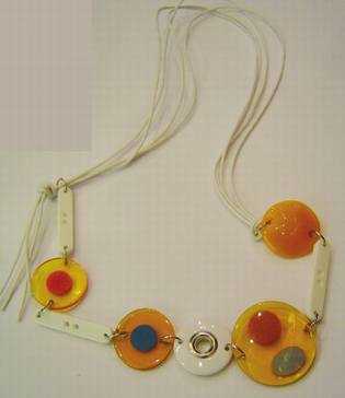 最重要的是,你要懂得几何图形该如何配搭,粗细线条的结合、规则与不规则图形的混搭、一种图形大面积的拼接,这些都是不错的配搭方式。本季夸张的几何造型,设计感强烈,却不一定非要贵重的材质才能体现,丝带、皮绳、玻璃,甚至是塑料管都可以披挂上阵。但因为配搭得体,并没有廉价感,反而让人感到轻松、活泼。颜色则充满了夏天的味道,黄、橙、红、紫……绝对够炫。