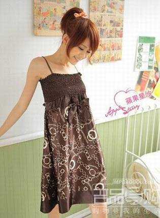 材质很容易显得像睡衣,这种尖尖底领口上身有胸衣特征的裙子,内加一片抹胸要来得更为妥当,发型妆容也要特别注意,不然就真的很像睡衣叫人感觉很随便了。