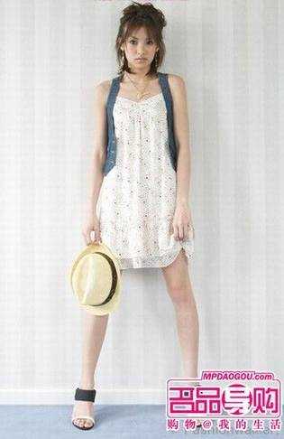 比较素色的雪纺裙好多日本杂志里都拿来搭配细条的马甲,这种马甲基本也是个装饰效果,但混搭出来的感觉会让你比较中性又不失女生子的柔美。