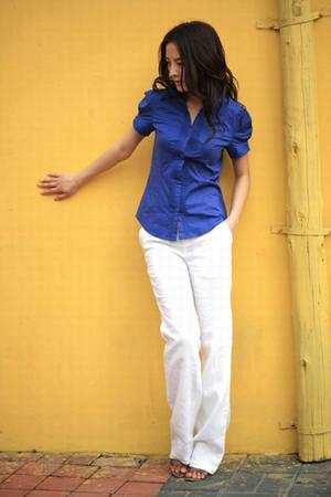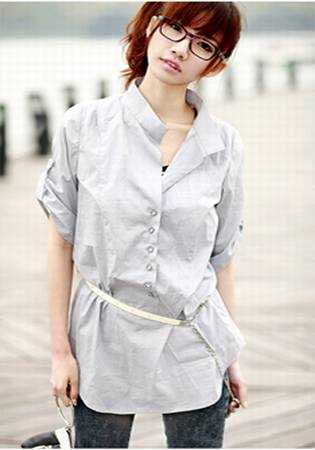 一直感觉穿这种宽宽松松纯色衬衫的MM们很有酷感 肩口的小褶皱设计使衣服多了些许层次感