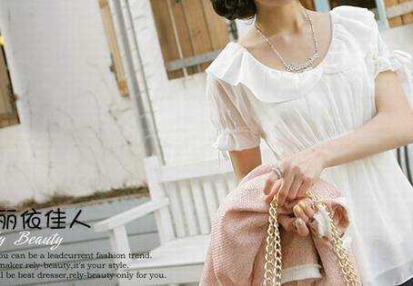皇冠两件包EMS♀韩国订单~09新款韩版荷叶领唯美收腰雪纺衫