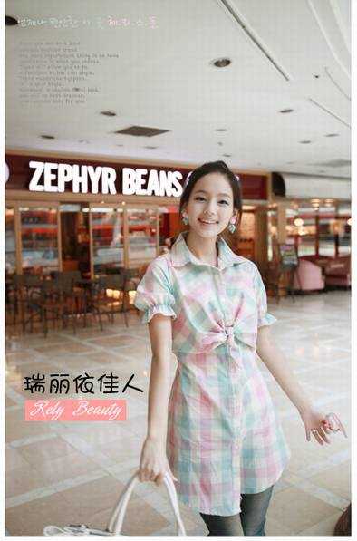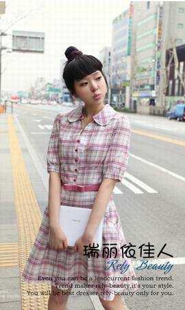 皇冠两件包EMS♀韩国订单~09新款韩版甜美蝴蝶结清新格子长款衬衣